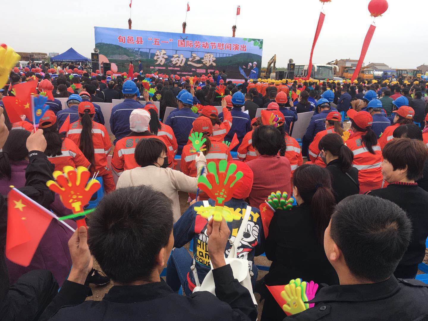 為了慶祝即將到來的“五一”國際勞動節,在全縣大力弘揚工人階級偉大品格和勞模精神,增強主人翁責任心和自豪感,進一步激發職工群眾的干事創業熱情,4月24日,由中共旬邑縣委、旬邑縣人民政府主辦,旬邑縣總工會、旬邑縣文廣局、旬邑縣交通局、旬邑縣文旅局承辦的“勞動之歌”慶祝“五一”國際勞動節慰問演出活動在咸旬高速赤道互通式立交建設工地成功舉辦。